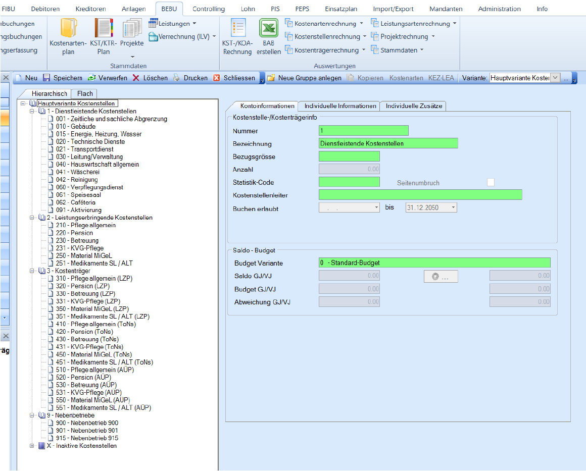 In der Maske kann nun der Vorlage-Kostenstellenplan bearbeitet und bei Bedarf ergänzt werden.