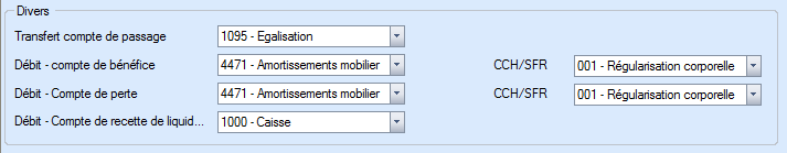 - Contrôler / compléter les comptes et la valeur - préciser le compte de liquidation et le montant de liquidation (par exemple la caisse si encaissement d'un montant en cash) - Compte de bénéfice / perte (en général le compte d'amortissement)