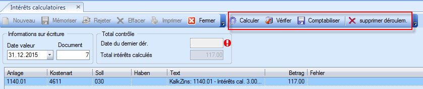 Avec Calculer, les intérêts calculés sont calculés et affichés.