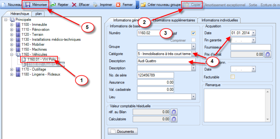 - Donner un numéro d'immobilisation à la nouvelle immobilisation