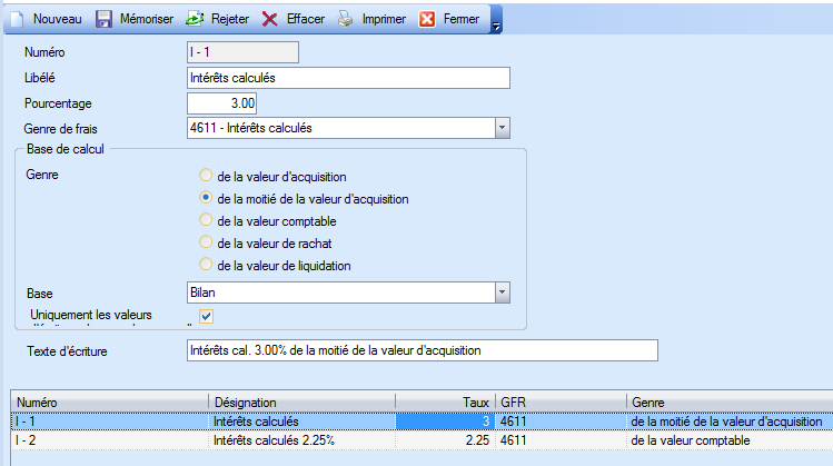 Il est possible de saisir plusieurs taux d'intérêts pour différentes catégories d'immobilisations.