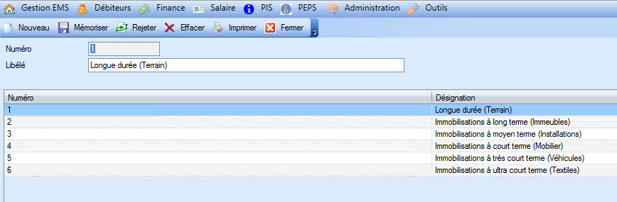 Finance – Données de base – Immobilisation – Catégorie d'immobilisations