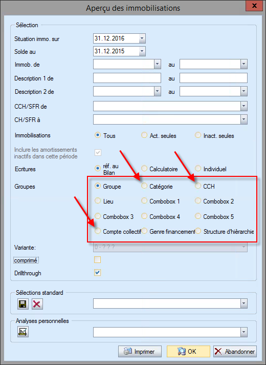 Avec la fonction „Imprimer", les amortissements traités sont imprimés.