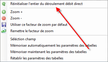 Clic droit sur la ligne désirée et choisir la fonction „Réinitialiser".