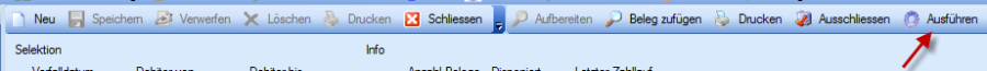 Une fois que tout est en ordre dans l'aperçu (Debit Direct à traiter cochés et les autres décochés), le déroulement Debit Direct peut être créé via le bouton Ausführen.
