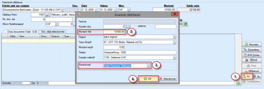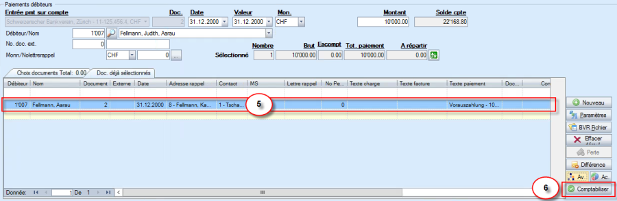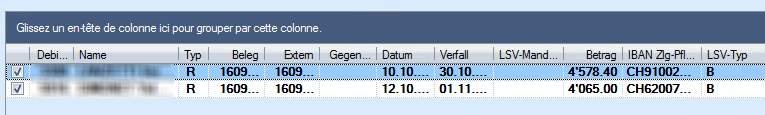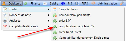 Variante 2: Les paiements LSV sont traités avec la fonction „Comptabiliser déroulem LSV".