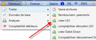 Il est possible de lancer le LSV ou le Debit Direct directement depuis la Gestion EMS (ancienne méthode). pour cette méthode, voir le manuel de base EMS.