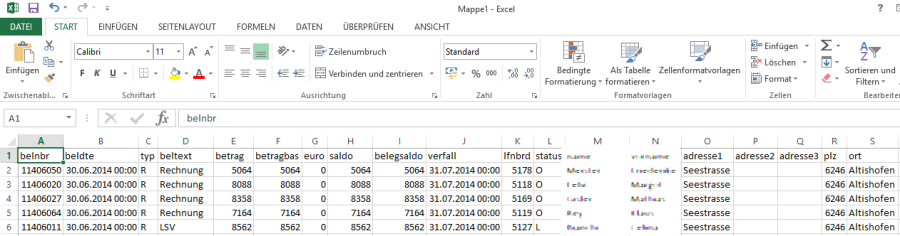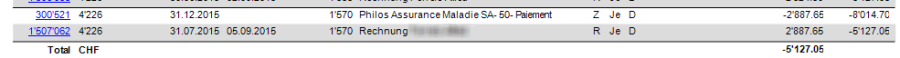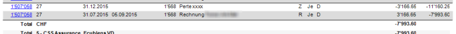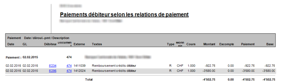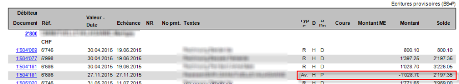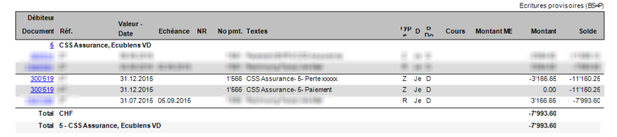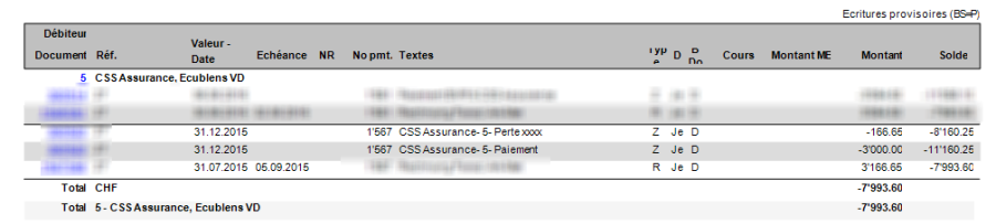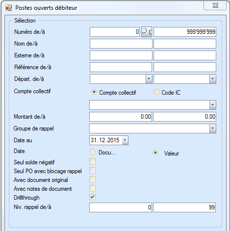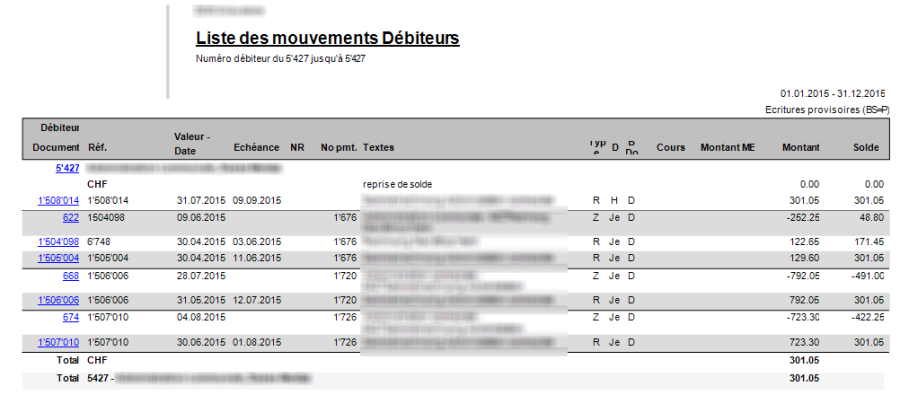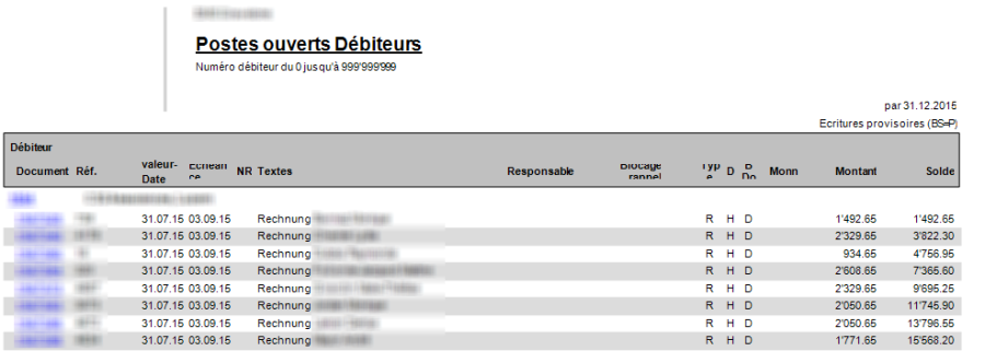 Cette liste montre tous les postes ouverts. La „date par" est cruciale et sert principalement à détecter le solde des comptes débiteurs dans le bilan à une date particulière.