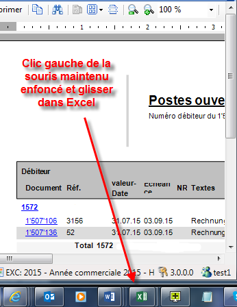 Avec le bouton gauche de la souris maintenu enfoncé, faites glisser la souris vers Excel.