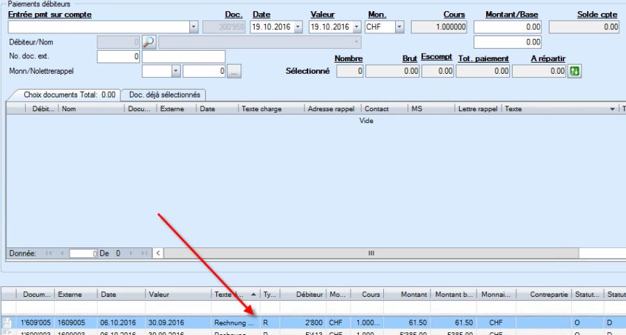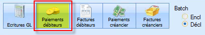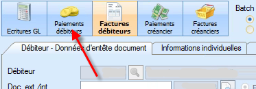 Les paiements manuels des débiteurs sont saisis avec la fonction Paiements débiteurs:
