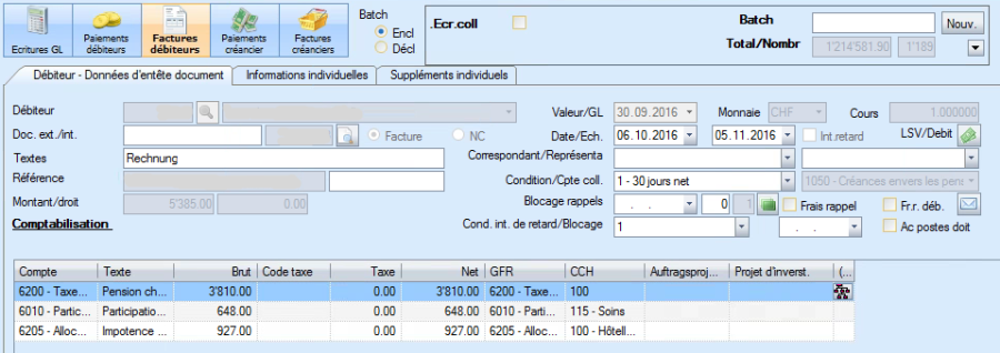 Pendant la phase de mise en oeuvre, le chef de projet décidera avec vous pour une variante. Veuillez utiliser à partir de ce moment que la variante communément admise. Ci-après, seule la nouvelle méthode qui est intégrée aux débiteurs est expliquée.