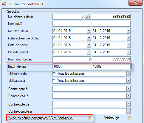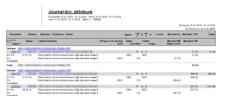 Exemple : journal des documents débiteurs inclus le détail des comptes par écriture
