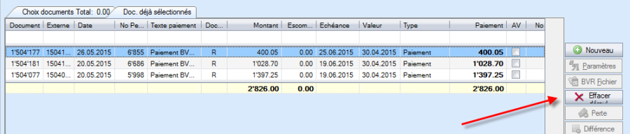 Il est également possible d'effacer une ligne/un paiement d'un déroulement de paiement comptabilisé.