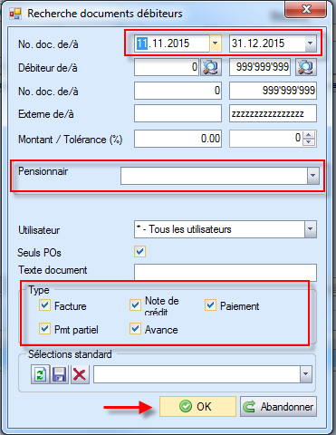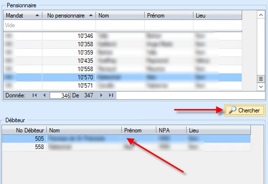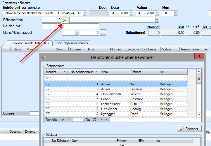 En cliquant sur le symbole de la loupe les postes ouverts par pensionnaire sont choisis:
