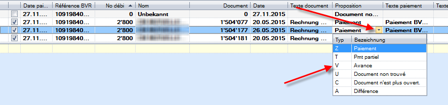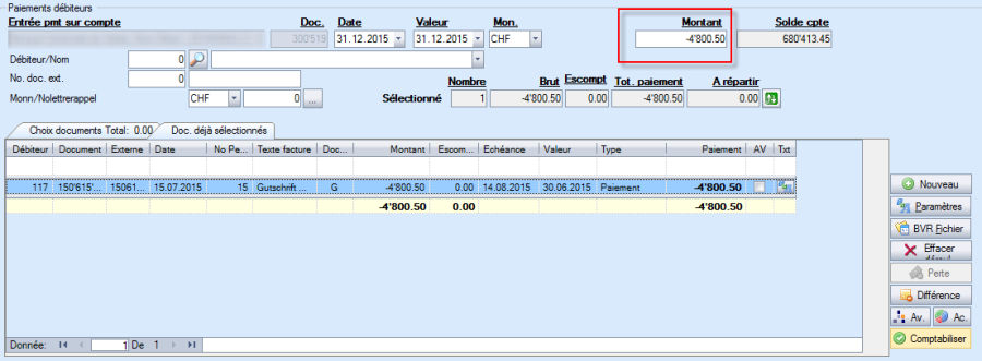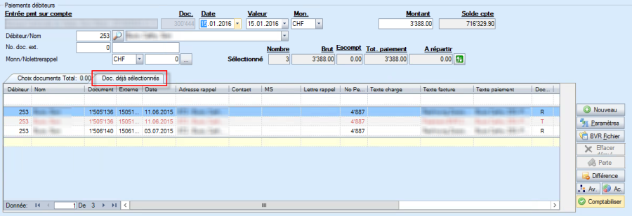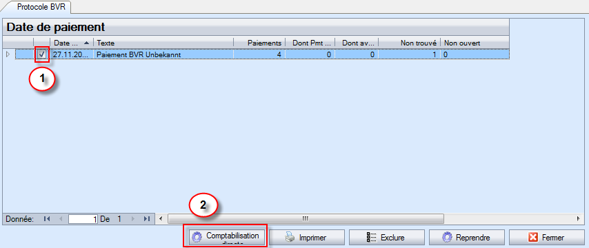 3.3.4 Fonction paiements BVR „Comptabilisation directe "