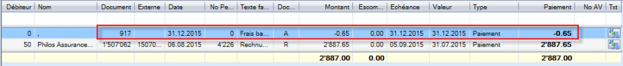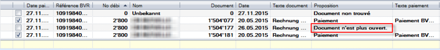 Quand le déroulement LSV est comptabilisé via le les paiements BVR, il ne restera dans le déroulement créé que les positions mal écrites. Ces factures seront traitées soit par un nouveau déroulement soit par un paiement alternatif (paiement normal de la part du débiteur)