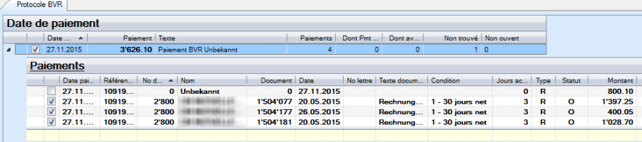 Avant le traitement, il est nécessaire de traiter d'abord les paiements inconnus avec le processus vu sous point 3.3.2.