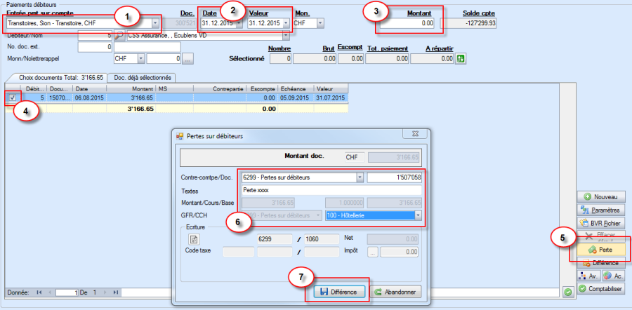 3.2.8 Différences (sans rapport avec des débiteurs) avec la fonction „Différence"
