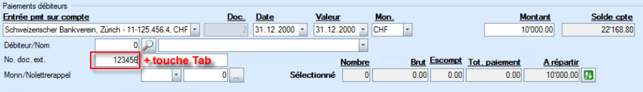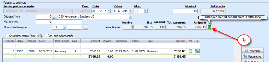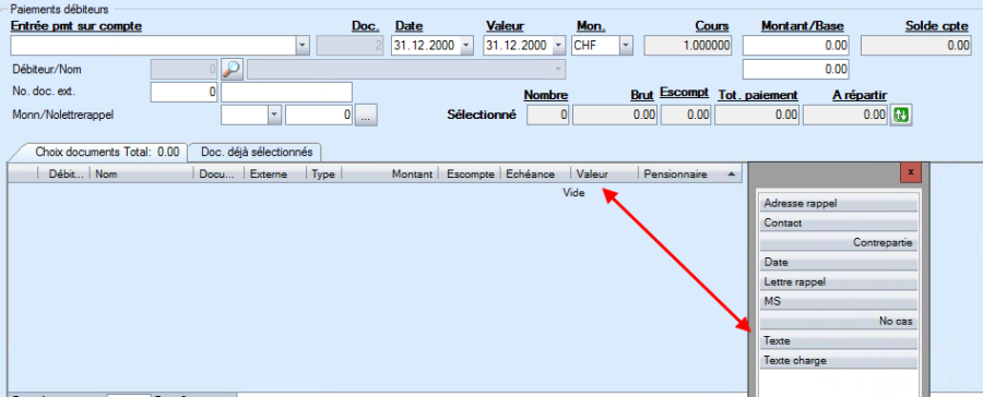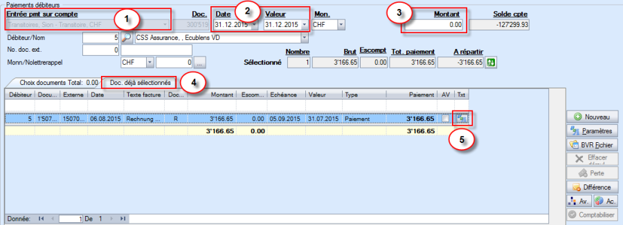 En cliquant sur Paiement débiteur, il est maintenant possible de continuer la saisie des paiement :
