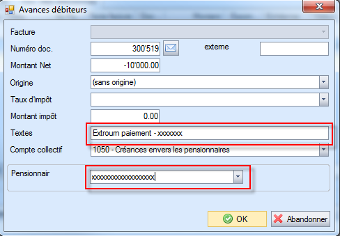 Remarque : Attention: Avec une comptabilité externe, les données déjà comptabilisées via l'interface finance doivent être corrigées manuellement dans la comptabilité externe au préalable.