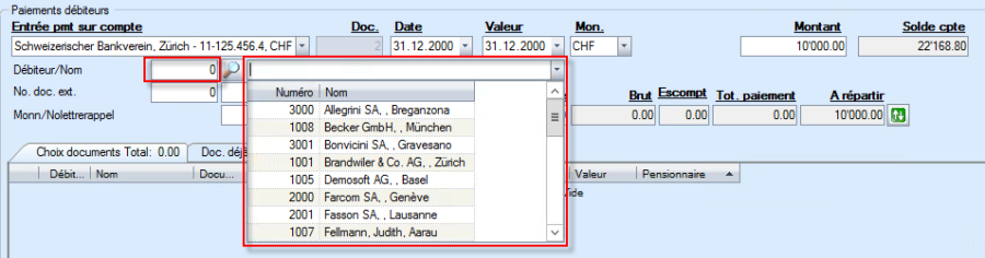 Entrée directe du numéro de débiteur ou choix du nom de débiteur:
