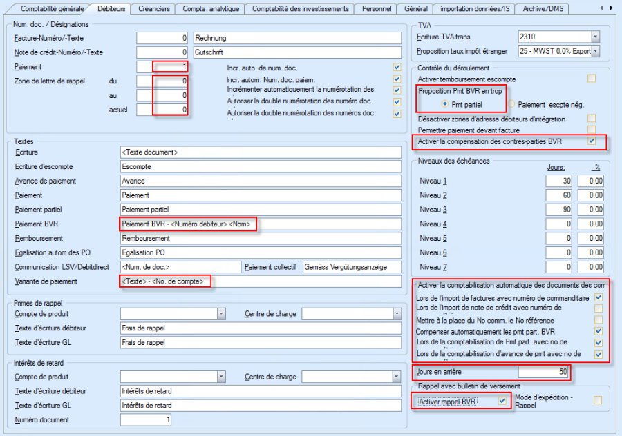 2.1.1 Paramètres généraux de la comptabilité des débiteurs