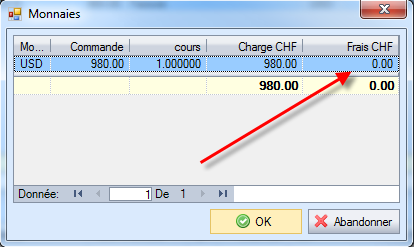 Le total de cette fenêtre est reporté dans "Montant frais" dans la fenêtre principale après avoir cliqué sur [OK].