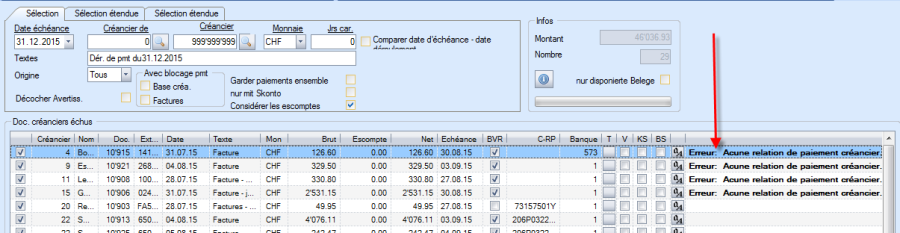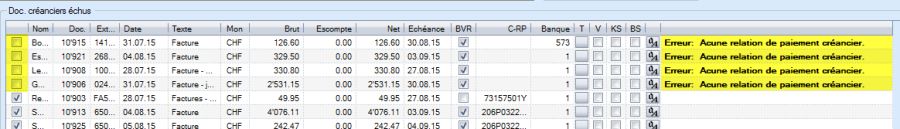 - Les documents avec des erreurs sont automatiquement désélectionnés du déroulement de paiement :