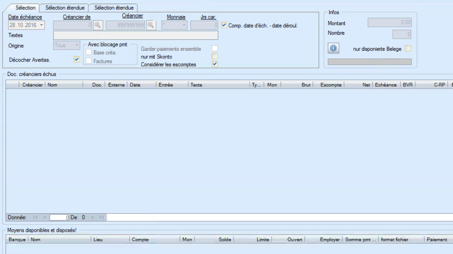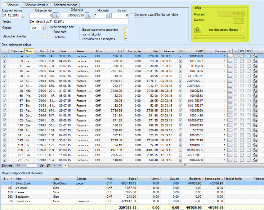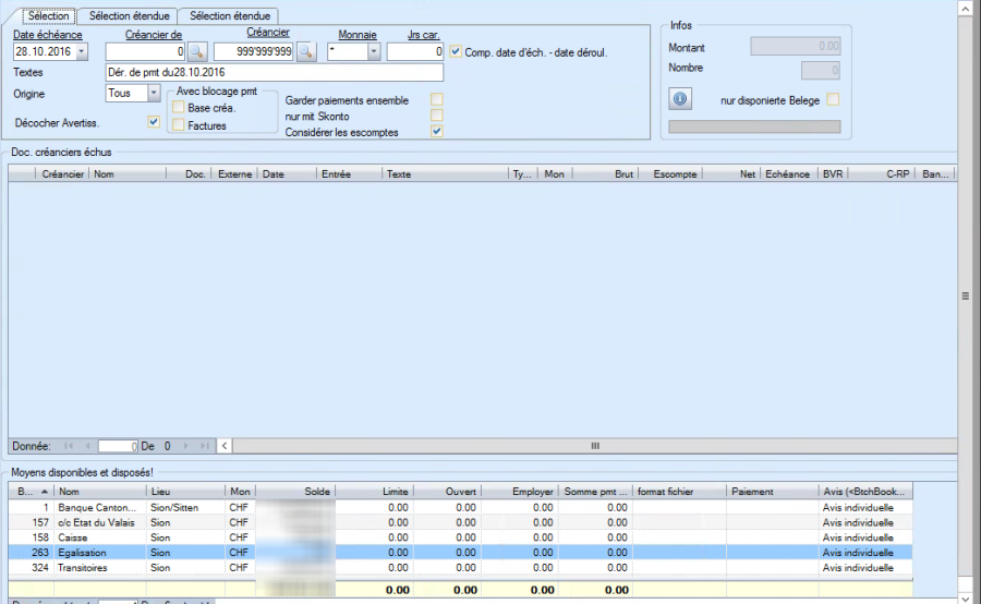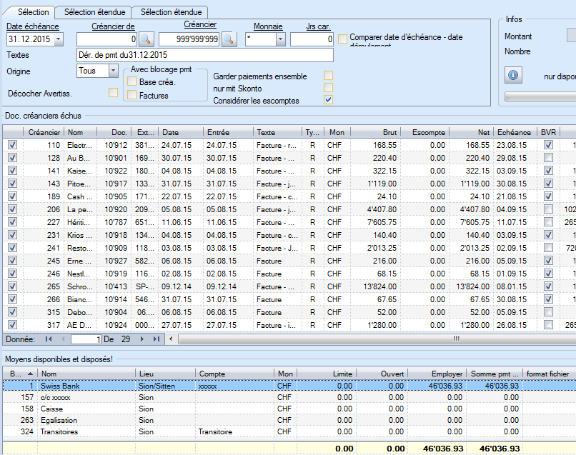 - Les factures créanciers doivent être saisie, lesquelles sont parvenues à échéance et ne sont pas bloquées pour le paiement.