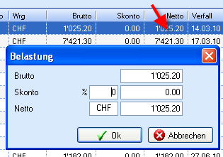 Remarque : la modification des escomptes ne fonctionne qu'avec les documents qui ont été saisi „Brut".
