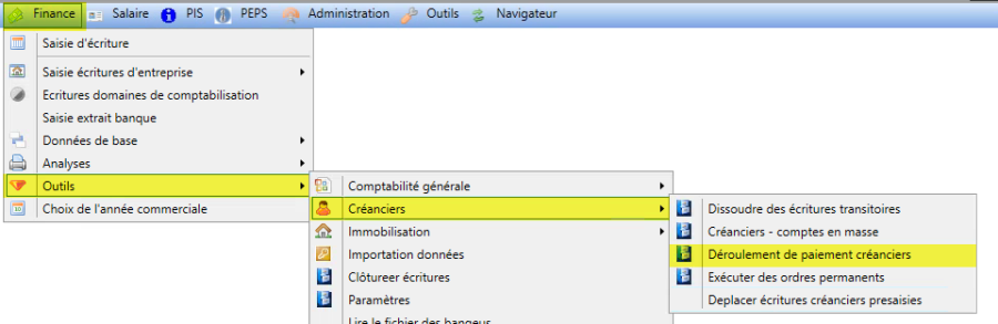 - 'Créancier de/à' : permet de traiter le déroulement de paiement pour un ou un domaine de créanciers.