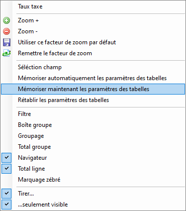 La fonction «Mémoriser maintenant les paramètres des tabelles» premet de sauvegarder les choix effectués pour les prochains accès au programme.