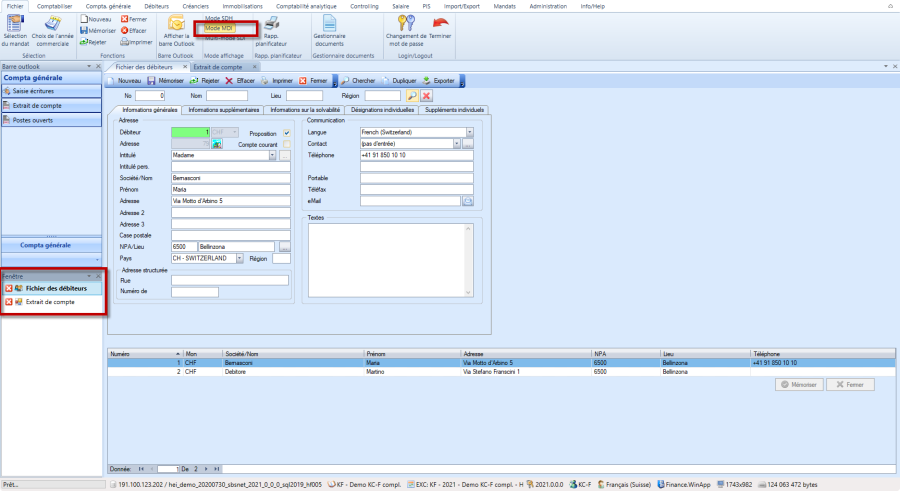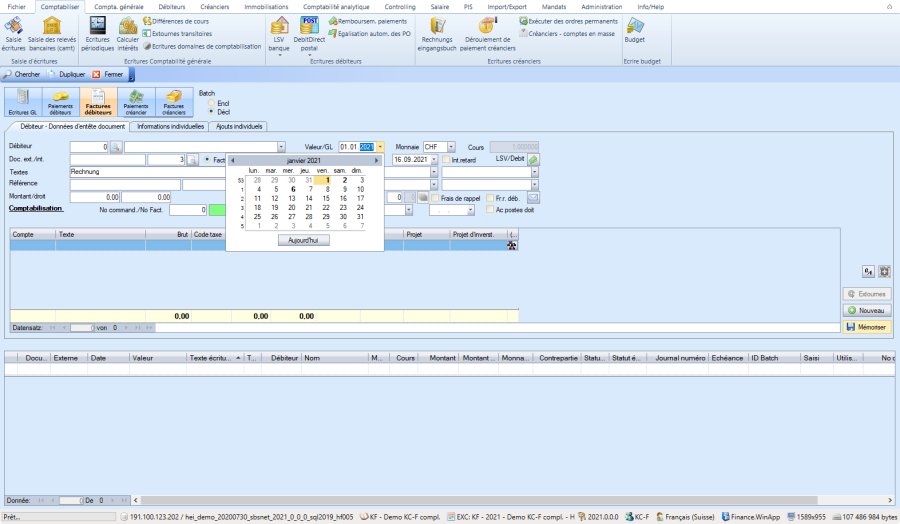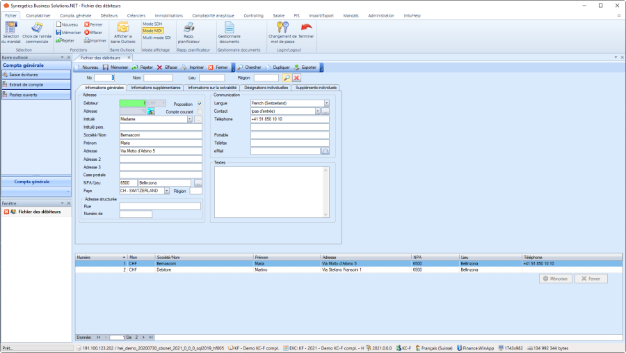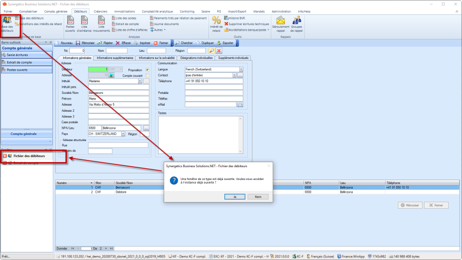 Débiteurs | Les données de base et évaluations de la comptabilité des débiteurs, les intérêts de retard, autorisations bancaires/postales et gestion des rappel. |