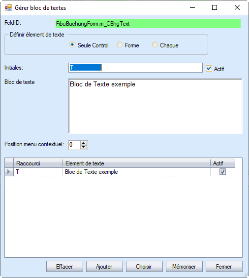 Vous pouvez accéder à la gestion des blocs de texte dans la zone concernée en appuyant sur F3.