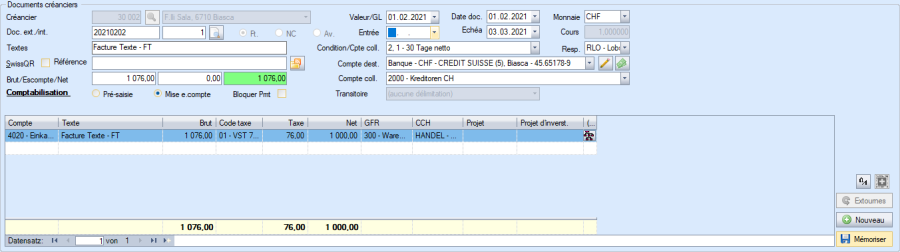 Créanciers | Les données de base et évaluations de la comptabilité des créanciers, déplacer des documents pré-saisis et écritures transitoires. |