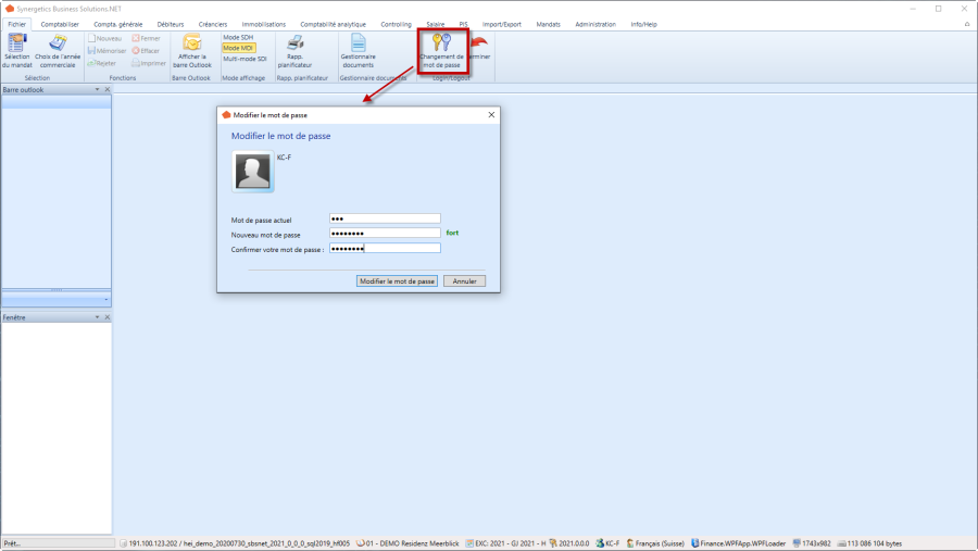Donné base | Sélection mandat, choix de l'année commerciale, parametrès de l'utilisateur, nouvelle connexion, modifier mot de passe, terminer. |