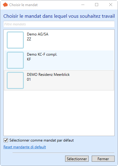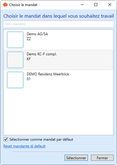 Ici aussi, la sélection peut être faite de manière analogue à la simple fenêtre de sélection combobox. En outre, en cliquant sur un en-tête de colonne, il est possible de trier (en appuyant sur la touche Shift) une ou plusieurs colonnes.
