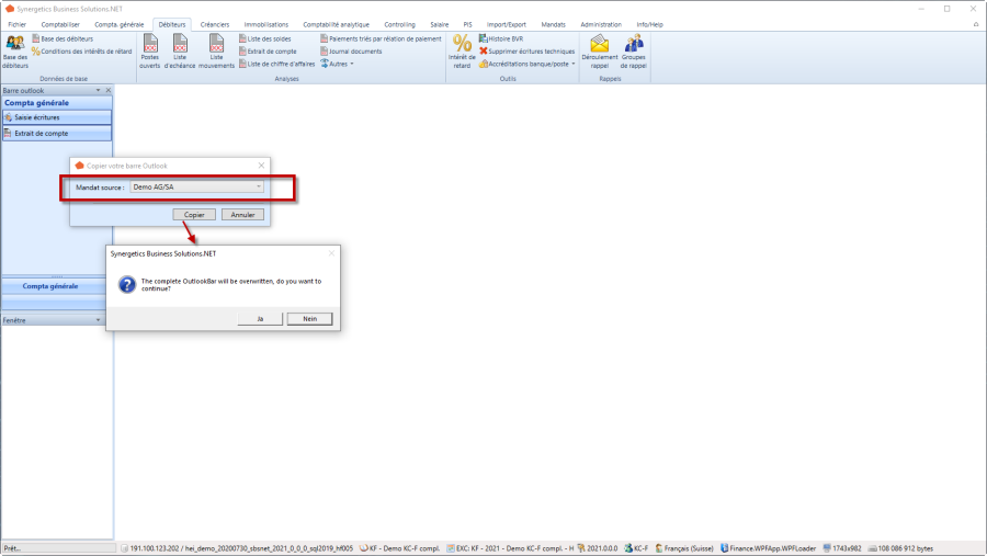 - La barre Outlook peut être copié d'un mandat à l'autre. Avec «Copier la barre Outlook» la barre peut être copiée d'un mandat source vers le mandat actuel: