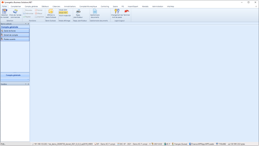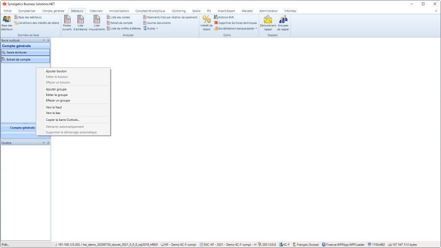 - La barre Outlook peut être activée ou désactivée via Fichier /Barre Outlook. Si elle est désactivée, l'utilisateur bénéficie automatiquement d'une fenêtre plus grande.