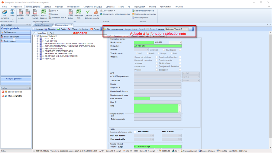 Dans le domaine des données de base telles que le plan de compte, le plan de type de coût, etc., les structures sont affichées sous forme d'arbre avec une fonctionnalité d'explorateur. Cela permet à l'utilisateur d'avoir une représentation logique et graphique des comptes.