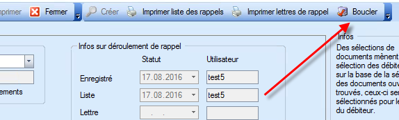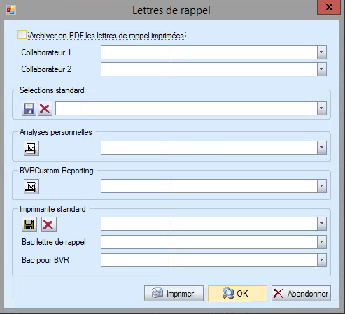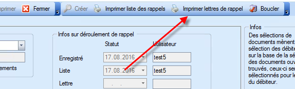 Quand toutes les données de rappels ont été traitées et contrôlées, les lettres de rappels peuvent être imprimées.