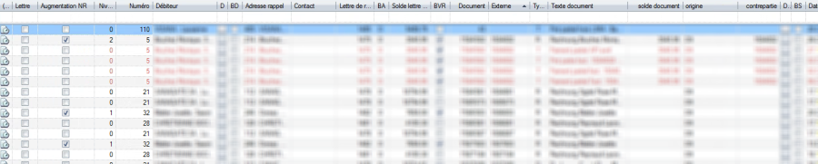 Remarque 3 :Y a-t-il un changement sur un document enregistré dans le déroulement de rappels (suite par exemple à l'entrée d'un paiement), ce document est marqué en orange dans le tableau.