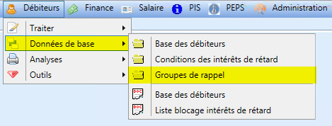 Point de menu : Débiteurs\Données de base\Groupes de rappel