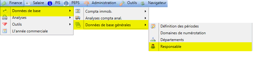 Point de menu : Finance\Données de base\Données de bases générales \Responsable