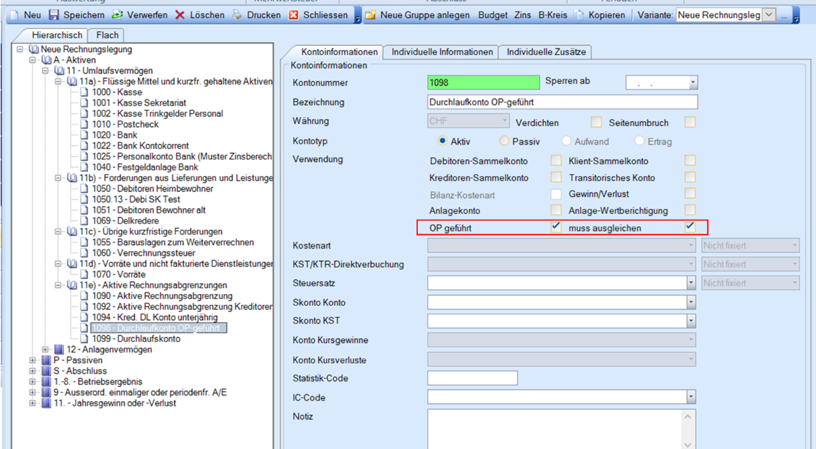 Damit ein Sachkonto OP-geführt werden kann muss dies im Sachkonten-Kontenplan hinterlegt werden.