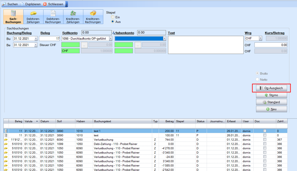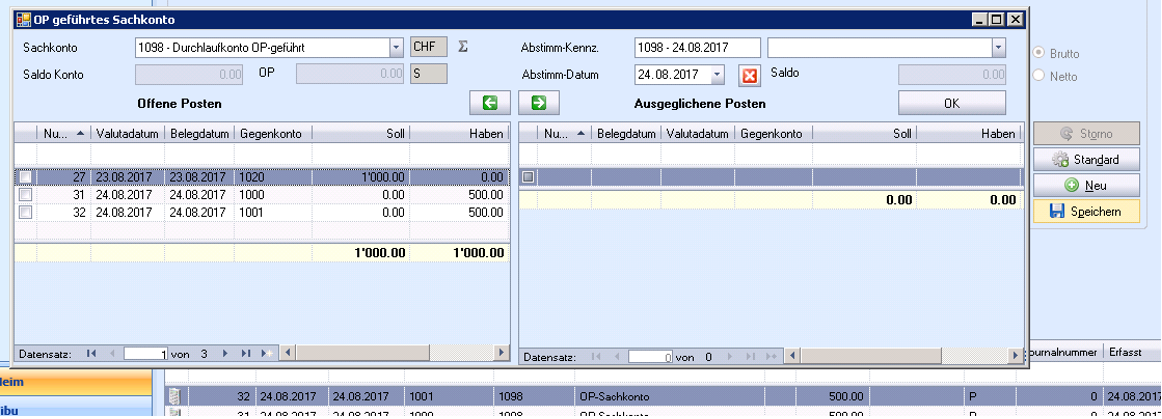 Aufgebaute Sachkonten-OP’s können auch nachträglich gegeneinander ausgeglichen werden.