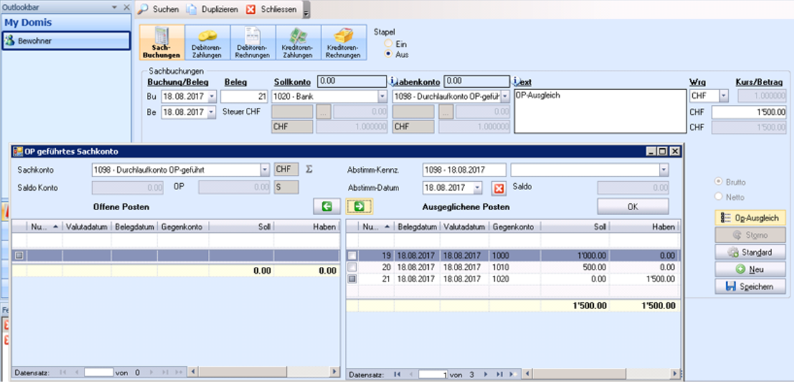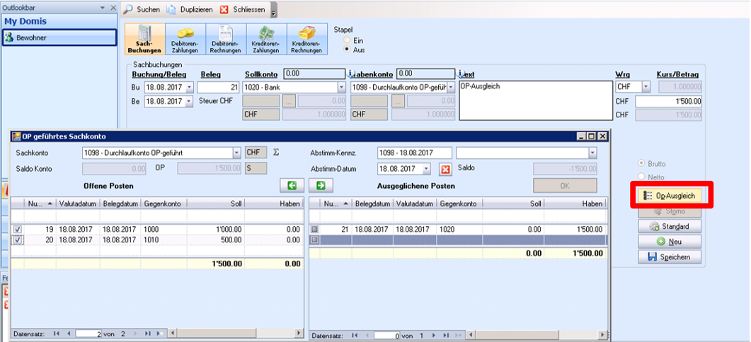 Mit Anhaken der auszugleichenden OP’s und Bestätigung mit [OK] wird der Ausgleich durchgeführt.
