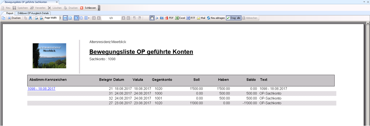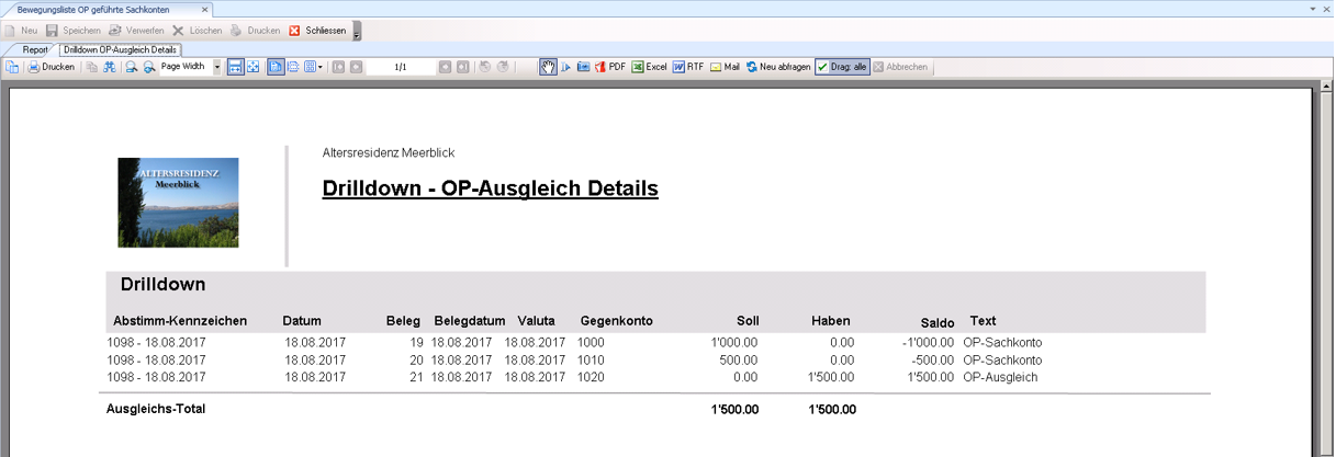 Mit einem Klick auf das Abstimm-Kennzeichen werden per Drill-Down die Einzelposten dargestellt.