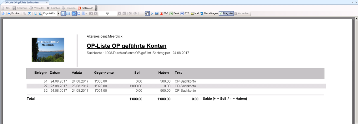 In der Offene Posten Liste werden ausschließlich noch nicht ausgeglichene Belege angezeigt. Aus den aufgeführten Belegen setzt sich der Saldo des Sachkontos zusammen.