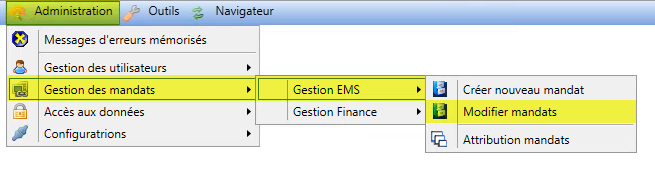 Ouvrir Administration, Gestion des mandats, Gestion EMS, Modifier mandats.